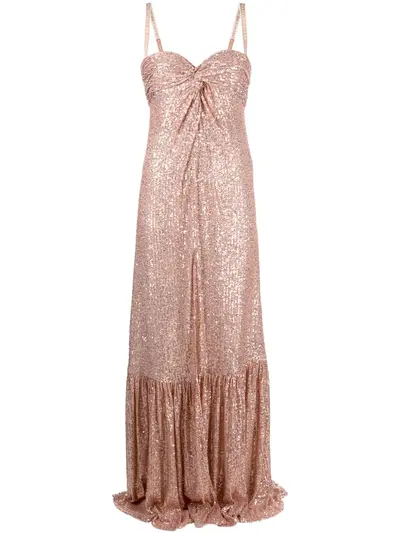 light pink sequin design draped detailing knot detailing front slit rear zip fastening sweetheart neck sleeveless floor-length