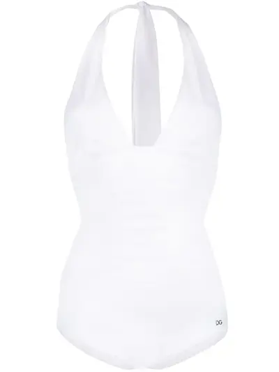 Dolce & Gabbana are the height of romanticism, femininity and Italian luxury. Along with bright colours and signature floral blooms, the designers behind the iconic brand are expert in fashioning timeless essentials for the woman of any age, as showcased with this white halterneck swimsuit. Featuring a tied neckline and ruched details. Swimwear must be tried on over your own garments.