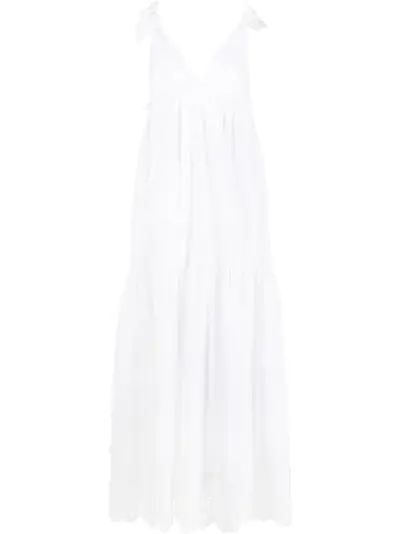 white cotton lace detailing tie-fastening straps V-neck empire line tiered skirt floor-length