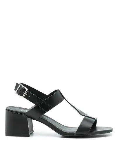 black leather open toe buckle-fastening slingback strap branded insole low block heel