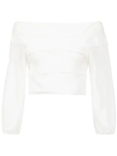 Off white panelled cropped top from Olympiah featuring an off the shoulder design, long sleeves, creases and a straight fit.