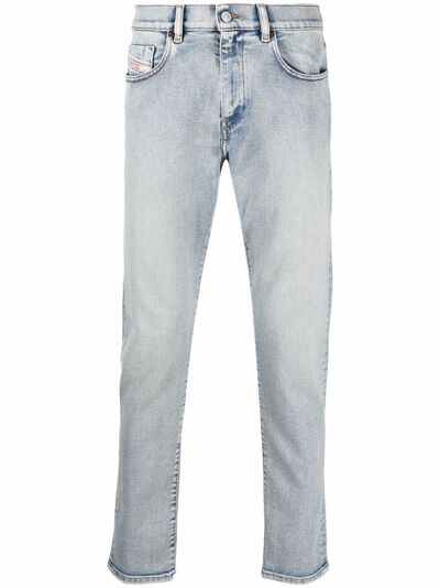 Light-blue cotton-blend D-STRUKT slim-cut jeans from DIESEL featuring slim cut, logo patch to the front, belt loops, button fly fastening and classic five pockets. Conscious: This item is made from at least 50% recycled or upcycled materials. For recycled synthetic clothing products we highly recommend using a microfibre-catching washing bag to ensure that no microplastics that can pollute water are released in the process..