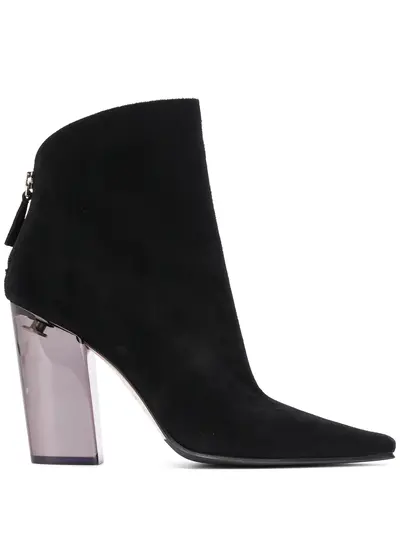 Black calf leather and calf suede Ivonne boots from Le Silla featuring a rear zip fastening, an ankle length, a pointed toe and a chunky high heel.