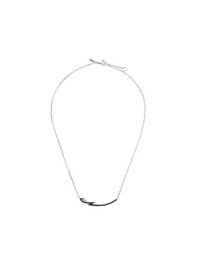 Drawing inspiration from the iconic Lady Stardust by David Bowie, this 18kt white gold Lady Stardust marquise diamond pendant necklace from Stephen Webster incorporates Bowie's famous lightning bolt motif with 0.20 carat black diamond pavé with a 4x2mm 0.18 carat marquise cut white diamond on a delicate chain with a lobster claw fastening.