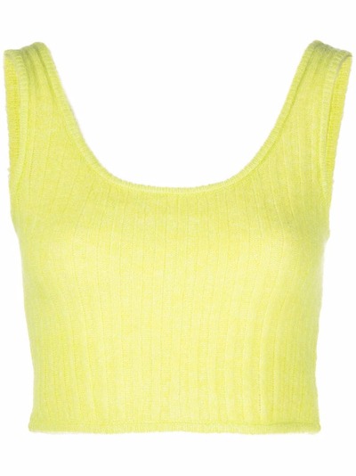 wild lime green recycled polyester-wool blend ribbed knit scoop neck sleeveless cropped