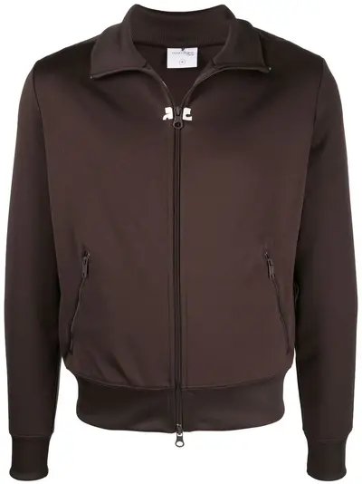 chocolate-brown funnel neck front zip fastening long sleeves stretch-design