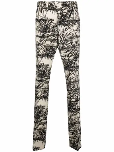 white/black wool blend all-over graphic print high-waisted elasticated waistband flared