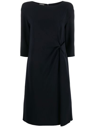 navy blue gathered detailing round neck three-quarter length sleeves mid-length