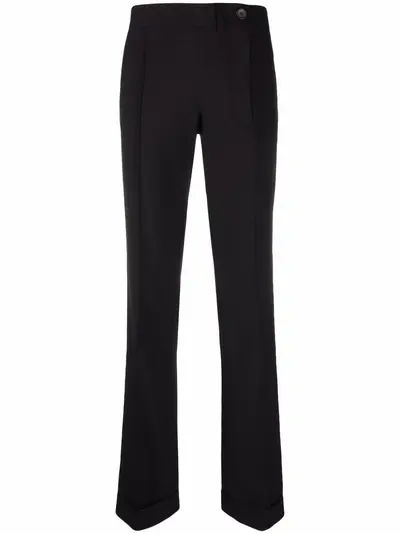 black virgin wool/cotton-blend mid-rise side button fastening pintuck detailing tailored cut turn-up cuffs