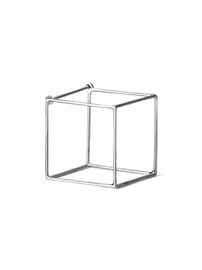 The three dimensional cubic form appears to float seamlessly around the earlobe when worn. One side is an earring post. You can alter the point at which the earring hangs depending on how you want it to appear. Available in 18K yellow or white gold in 5 sizes (7/10/15/20/25mm). Dimensions: 20mm x 20mm x 20mm. This is a single earring.
