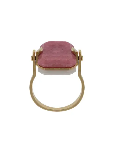 Gold-tone metal deco stone ring from Aliita featuring an engraved logo.