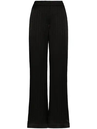 What does your style say about you? Spell it out with these black high waist wide leg trousers from Off-White that on closer inspection are adorned with an alphabet pattern striping down the garment. This is easily a great look like a,b,c. Featuring an elasticated waistband, side pockets, a long length, turn-up cuffs and rear pockets.