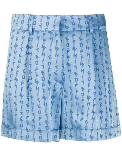 Blue represents both the sky and the sea, being associated with open spaces and freedom. Accurate, since you'll be wearing these light blue jacquard logo shorts from Off-White out in the open. Touché! Featuring a high rise, belt loops, a concealed front fastening, side slit pockets, rear welt pockets, turn up cuffs, a short length and tonal jacquard logos all-over.