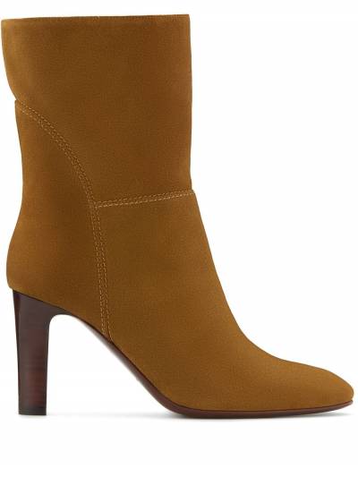 Old leaf green leather Viviana high-top boots from Giuseppe Zanotti featuring an almond toe, a slip-on style, a high block heel and tonal stitching details.