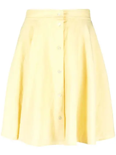 butter yellow linen/flax high waist front button fastening flared hem thigh-length Conscious: This item contains at least 50% low-impact materials, which are certified or widely recognised as having a lower environmental impact.