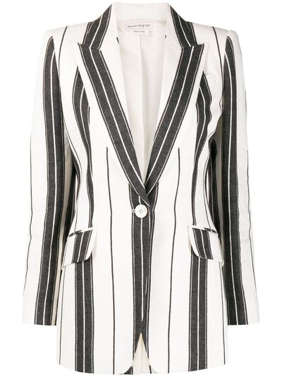 white linen-cotton striped print buttoned cuffs long sleeves peak lapels front button fastening two front flap pockets POSITIVELY CONSCIOUS: At least 50% of the main material of this product meets our conscious criteria: for example, it's either organic, recycled, upcycled, or independently recognised as being better for the environment (such as linen, ramie, Tencel, etc.).