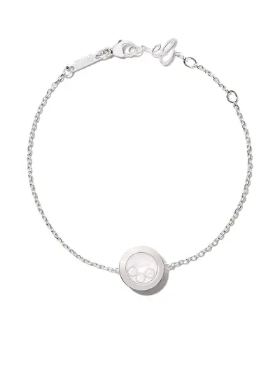 Taking inspiration from the sparkling drops of water in a waterfall, Chopard’s ‘Happy Diamonds’ collection is characterised by moving diamonds that gently dance and twirl to create a joyful cascade of light. Immaculately crafted from 18kt white gold, this stunning Happy Diamonds Icons bracelet features three freely floating diamonds which are held between two sapphire crystals on a unique round-shaped charm. It is fixed on a delicate thin chain with an adjustable fit and a lobster clasp closure. The total diamond content is 0.15ct. This Chopard product is made of 100% Ethical Gold, acquired from responsible sources and verified against international best practices on environmental and social standards.