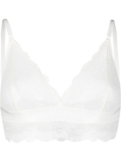 ivory white cotton blend lace panelling triangle cup adjustable spaghetti straps logo underband