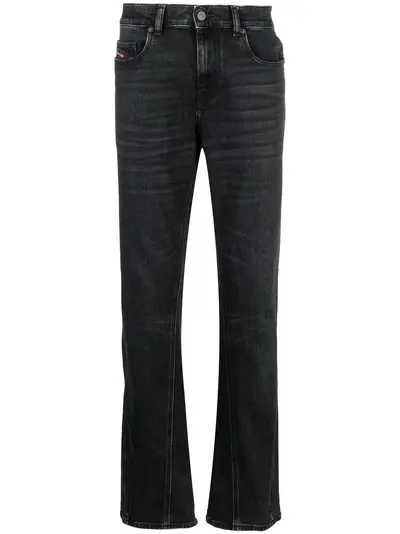 black cotton blend mid-rise belt loops classic five pockets bootcut straight leg