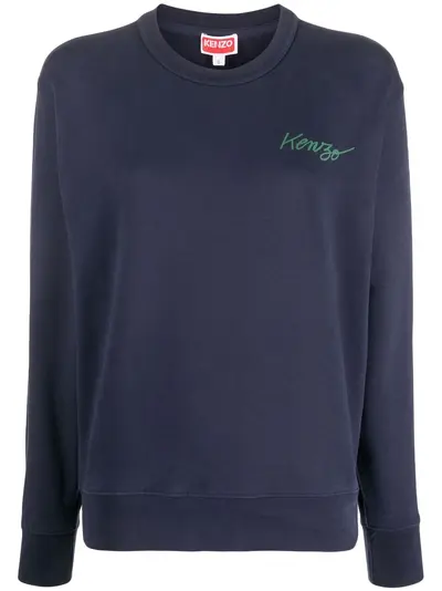 navy blue multicolour cotton jersey fleece logo print at the chest logo print to the rear floral print to the rear crew neck long sleeves straight hem