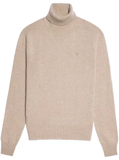 light beige cashmere signature Ami de Coeur monogram motif roll neck long sleeves ribbed hem
