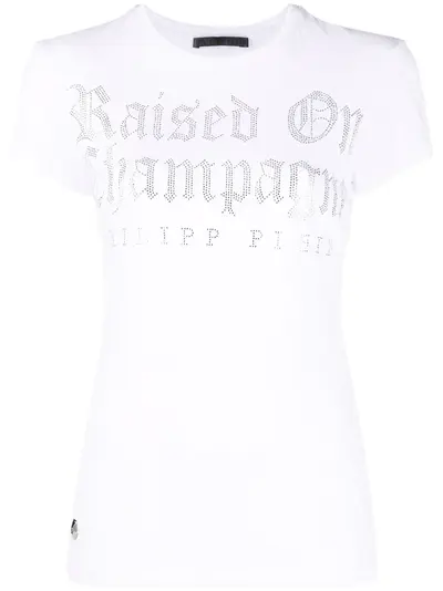 white cotton-blend snakeskin print crystal embellishment crew neck short sleeves straight hem