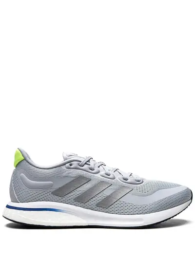 grey/silver-tone mesh detailing signature 3-Stripes logo contrasting heel counter round toe front lace-up fastening rubber sole signature cushioned Boost midsole These styles are supplied by a premium sneaker marketplace. Stocking only the most sought-after footwear, they source and curate some of the most hard to find sneakers from around the world.
