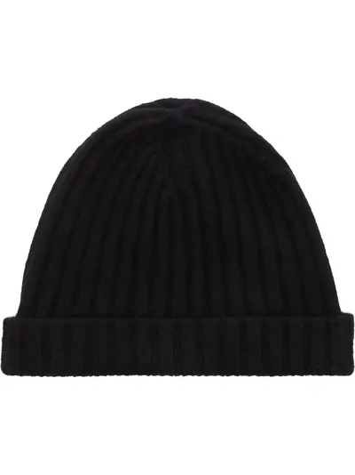 wool beanie hat from JIL SANDER featuring black, wool, ribbed knit and turn-up hem.