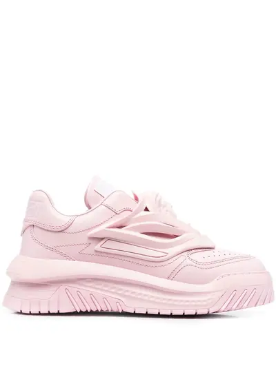 light pink leather perforated detailing Medusa plaque detail logo patch at the tongue branded heel counter round toe front lace-up fastening branded insole chunky rubber sole