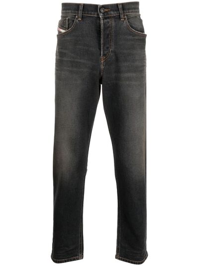 embroidered-logo 2005 jeans from DIESEL featuring charcoal grey, cotton blend, embroidered logo to the rear, front button fastening, two diagonal pockets to the sides and two rear patch pockets.