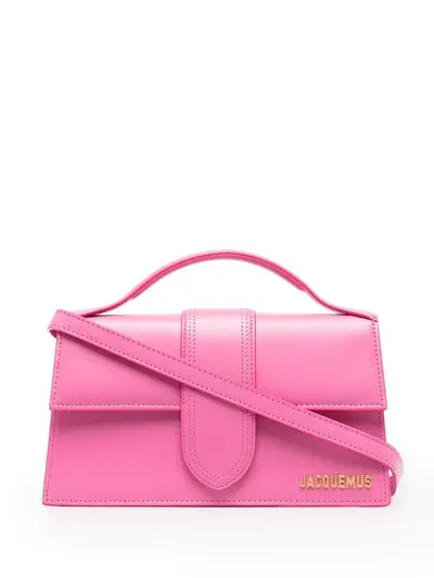 hot pink calf leather logo lettering foldover top with magnetic fastening single flat top handle detachable shoulder strap rear patch pocket internal logo patch internal patch pocket leather lining gold-tone hardware rectangle body