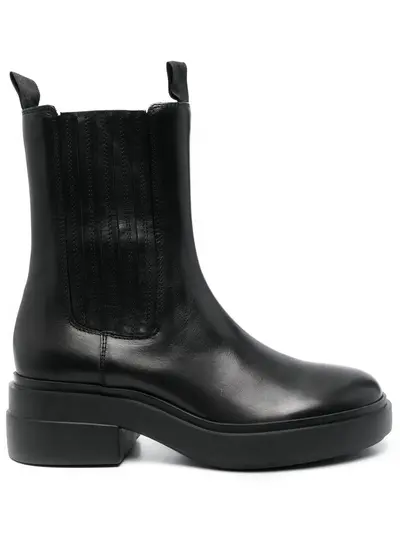 jet black calf leather elasticated side panels pull-tab at the heel round toe chunky rubber sole 55mm low heel