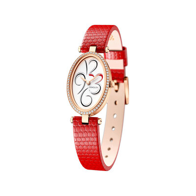 Коллекция Allure. Женские золотые часы 585 пробы. Лаконичный корпус овальной формы является идеальной оправой для циферблата. Может быть украшен фианитами или бриллиантами. Центральные лапки для крепления ремешка придают часам лёгкость и изящество. Циферблат и позолоченные стрелки защищены устойчивым к царапинам сапфировым стеклом. Переводная головка округлой формы подчёркивает женственность часов. Все ремешки выполнены из кожи итальянской выделки с текстурой «ящерица» и лаковой. Фирменная пряжка декорирована символом крыльев.
