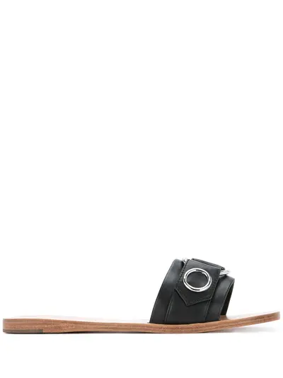 Ebony leather Bobby eyelet slider sandals from Senso featuring an open toe, a branded insole and a flat leather sole.