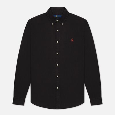 </p>Мужская рубашка Polo Ralph Lauren Garment Dyed Oxford Slim Fit, цвет чёрный, размер L