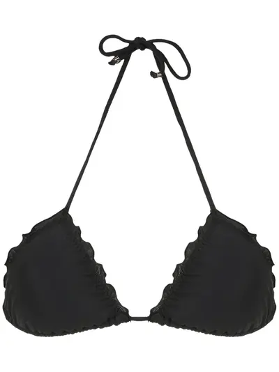 Black bikini top from Amir Slama featuring a ruffled hem and a back lace up fastening.