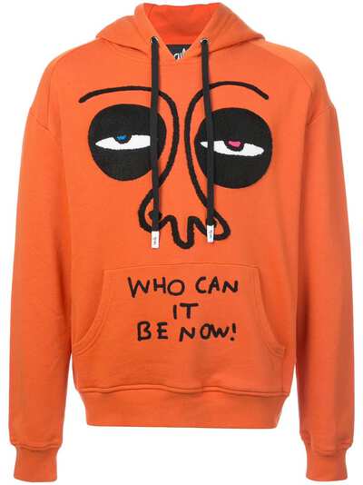Orange, black and white cotton slogan-detail hoodie from Haculla featuring a hood with drawstring tie fastenings, dropped shoulders, an embroidered design, a slogan detail, a kangaroo pocket, long sleeves and fitted cuffs.