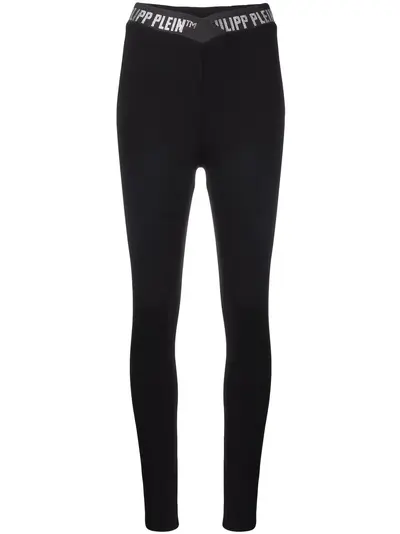 black cotton logo embellishment crystal embellishment high-waisted skinny cut