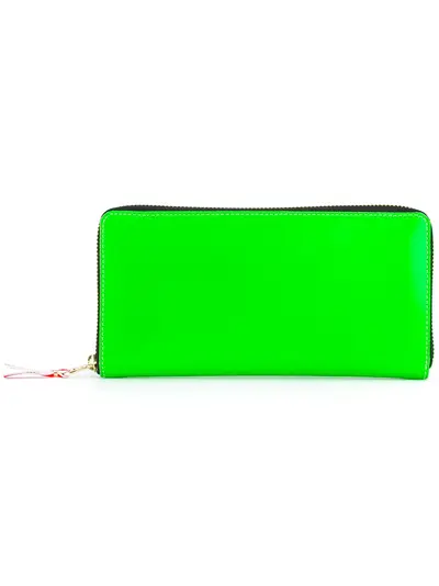 Neon green goat skin leather panel zip wallet from Comme Des Garçons Wallet. This item is unisex.
