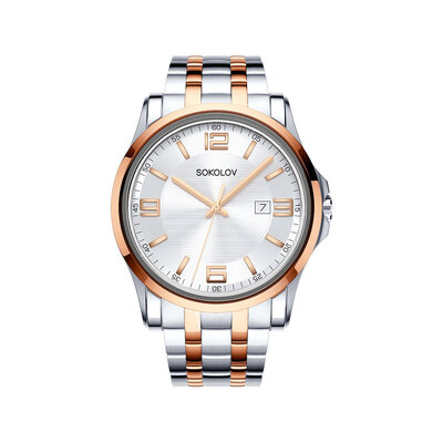 Часы серебристого оттенка с циферблатом в тон, позолоченными рантом и звеньями подчеркнут характер и стиль обладателя. Твоя жизнь, твои правила!