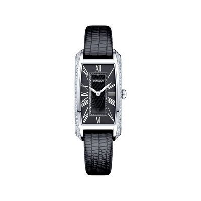 Коллекция Favorite game, серебро 925, швейцарский механизм, стекло минеральное с сапфировым напылением, фианиты, ремешок из натуральной кожи